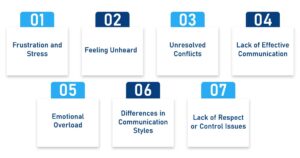 Furthermore, these situations demand effective communication methods to resolve them. Avoid reacting to shouted voices, remain steady, and show empathy toward the person. Instead, start a discussion about the particular problems leading to frustration. Hence, couples can solve their problems without using yelling as an outlet through emotional support, active listening, and a safe environment for sharing feelings.